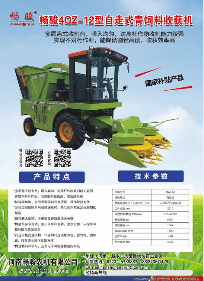 河南暢駿農(nóng)機(jī)生產(chǎn)的4QZ-12型自走式青飼料收獲機(jī)